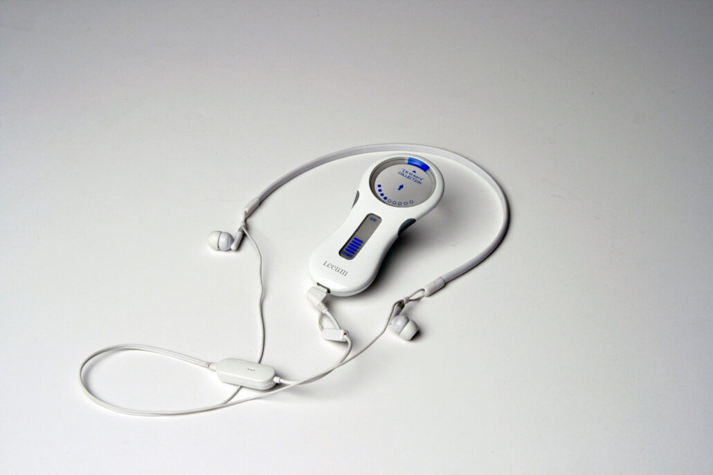 An LED gauge visualizes the progress of the selected collection among various available guide options. For data transfer and audio content delivery, the device is equipped with a micro-USB connector, allowing for simple maintenance and system updates.